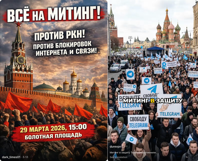 В середине марта TikTok заполнили ролики с иносказательными призывами протестовать. Часть из них была сгенерирована ИИ. «Агентство» обнаружило более 50 таких роликов: в них россиян призывали выйти на улицы своих городов 29 марта, чтобы сделать «бесплатные фотки», искать кошку, собаку или потерявшийся кошелек. Найденные «Агентством» ролики собрали от 100 до 60 тысяч просмотров.