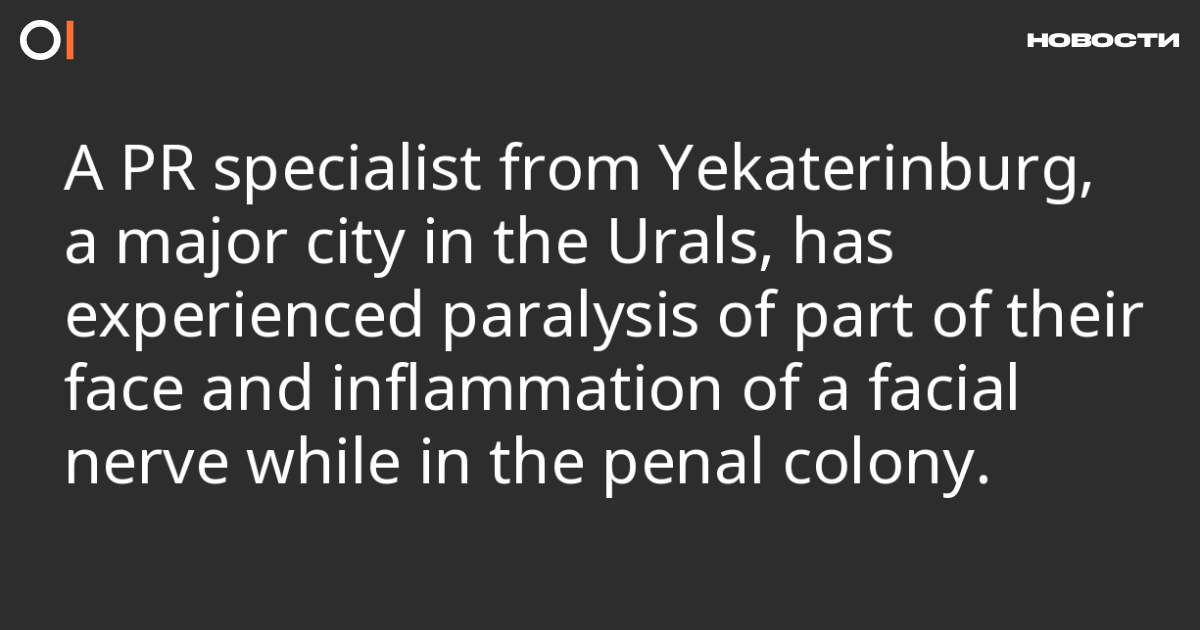 The PR specialist from Yekaterinburg, Yaroslav Shirshikov, developed inflammation of a facial nerve in the penal colony, resulting in paralysis of the right side of his face and numbness of his tongue, his lawyer reported.