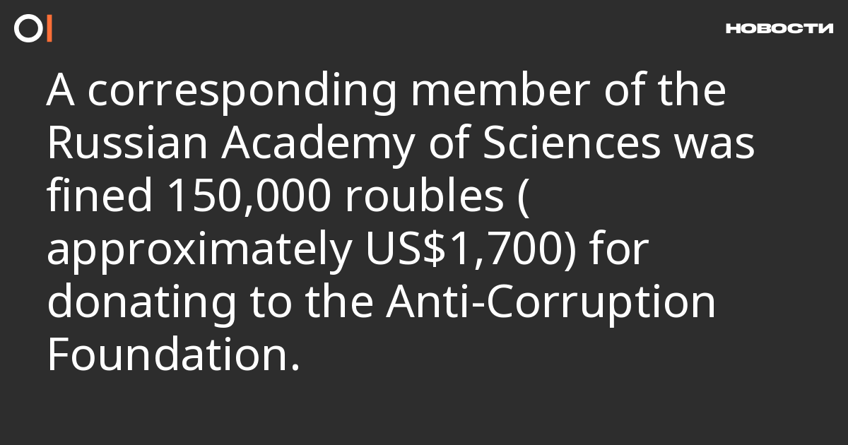 Sergei Abramov, a corresponding member of the Russian Academy of Sciences, has been fined 150,000 roubles (approximately US$1,700) over alleged donations to the Anti-Corruption Foundation (FBK). This was reported by RusNews.