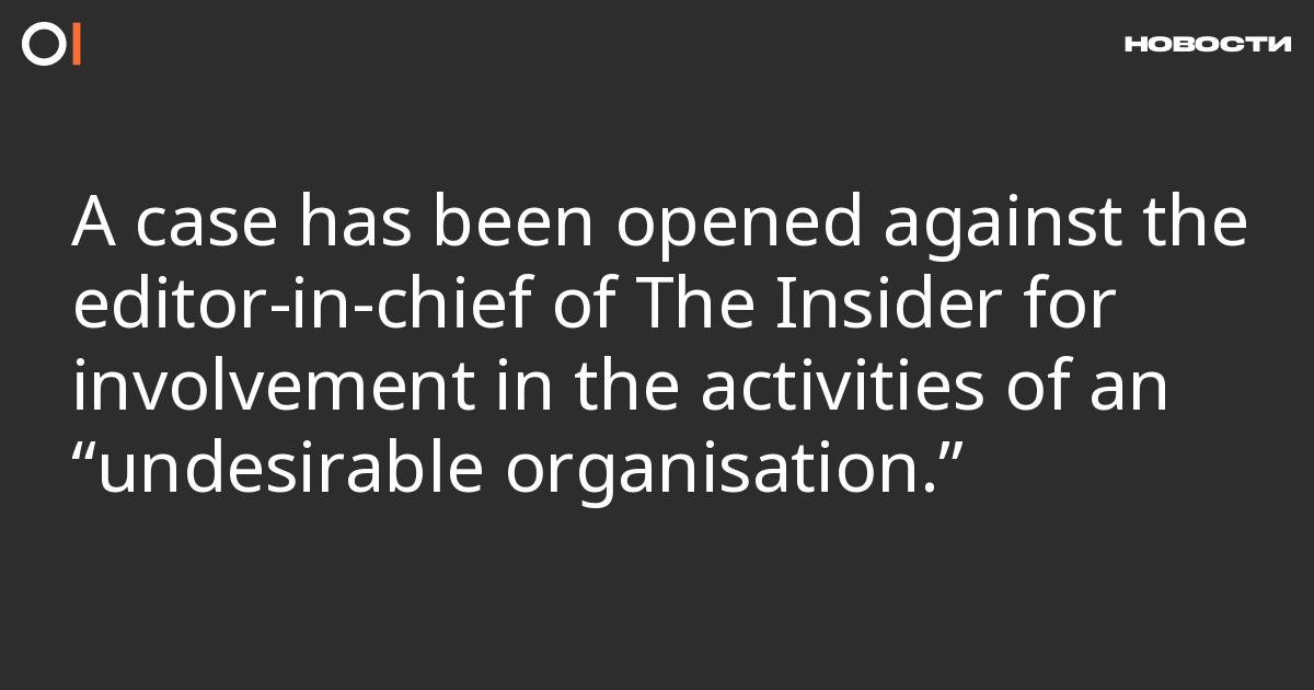 A criminal case has been opened against Timur Olevsky, editor-in-chief of The Insider news service, for involvement in the activities of an “undesirable organisation” (Part 1 of Article 284.1 of the Criminal Code). This was reported on the Telegram channel of the Moscow Prosecutor’s Office.