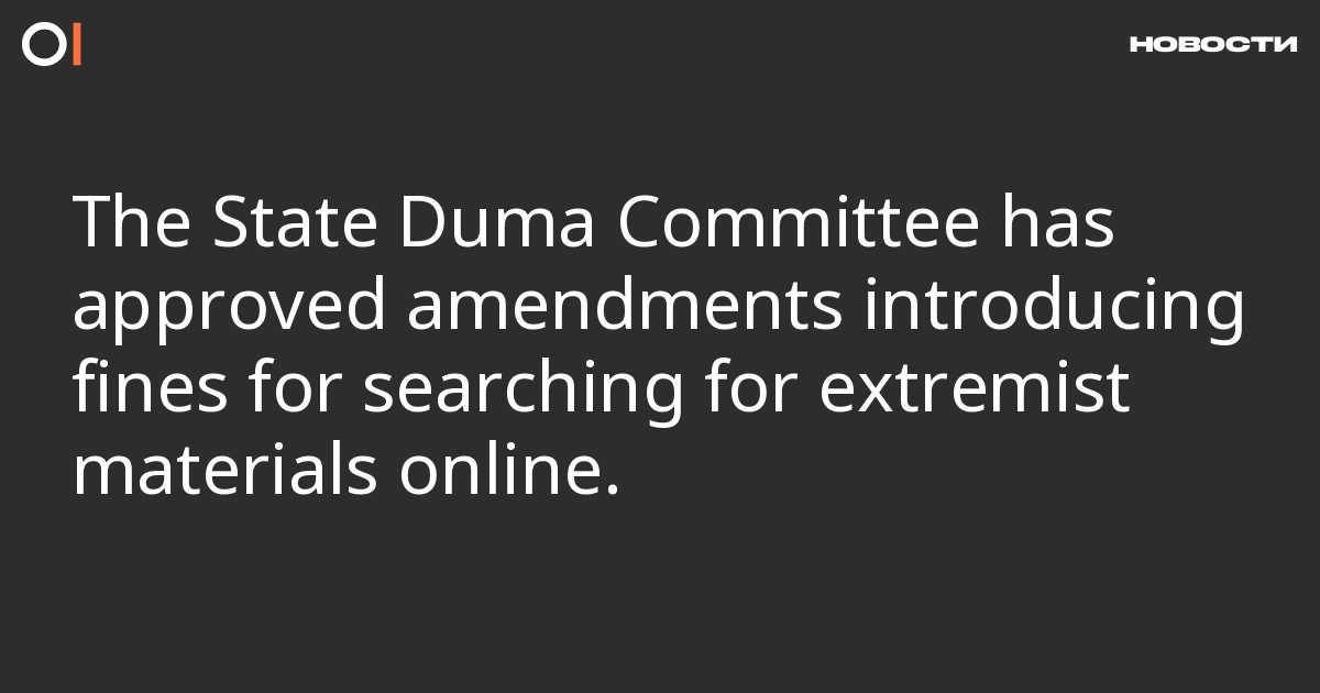The State Duma Committee on State Building and Legislation has recommended passing, at its second reading, amendments to the Code of Administrative Offences that introduce fines for searching for extremist materials. Net Freedoms and Forbes have reported on this.