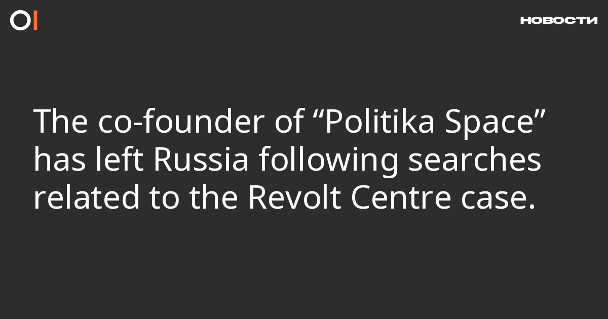 Kirill Nenashev, director and co-founder of Politika Space, has left Russia following searches connected to the case of Revolt Centre founder Pavel Andreev. He shared this on Facebook, as noted by SOTA.