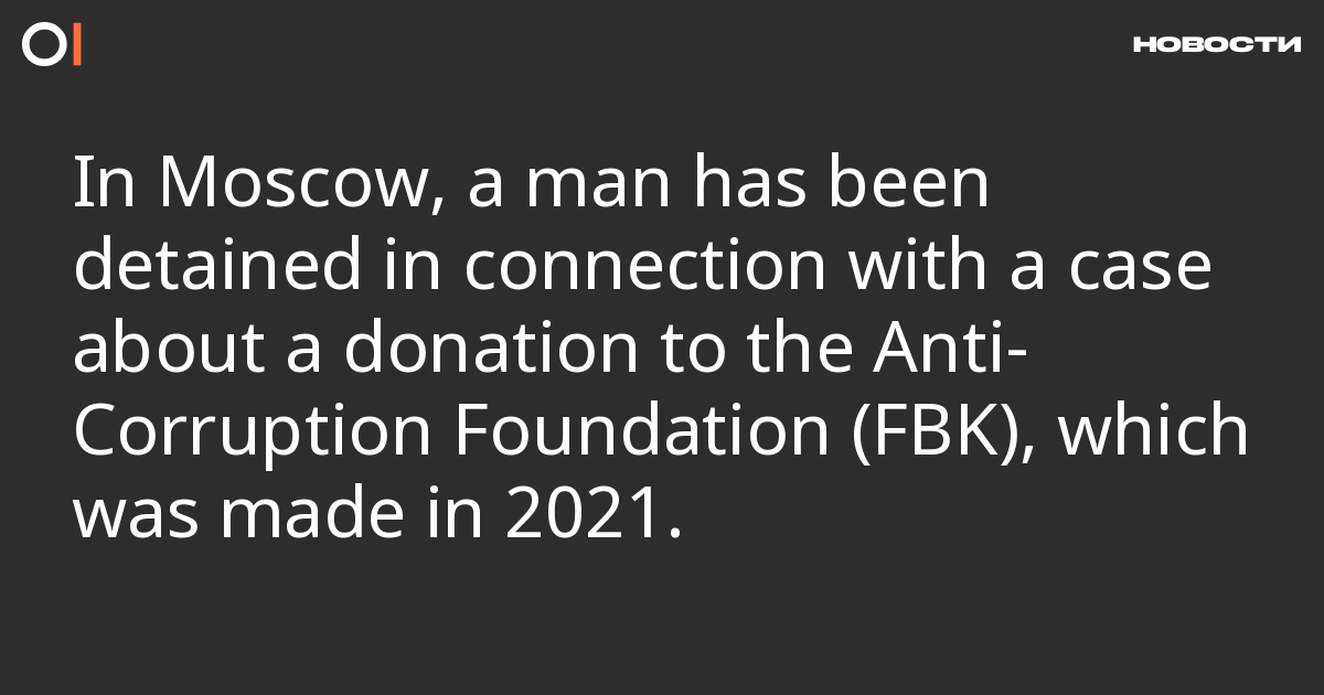 Security forces have detained a man on charges of financing extremist activity (Part 1, Article 282.3 of the Russian Criminal Code) over a donation made to the Anti-Corruption Foundation in 2021, reports lawyer Kaloy Akhilgov. The news outlet “Mediazona” writes that the detention took place in Moscow.