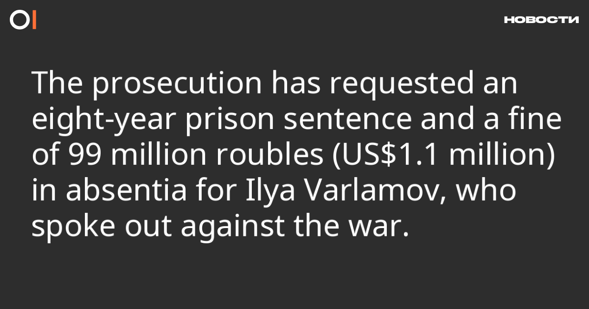 At the closing arguments in Moscow’s Meshchansky District Court, the prosecution has requested that “foreign agent” blogger Ilya Varlamov be sentenced in absentia to eight years in prison and a fine of 99 million roubles (US$1.1 million). This was reported by RIA Novosti.