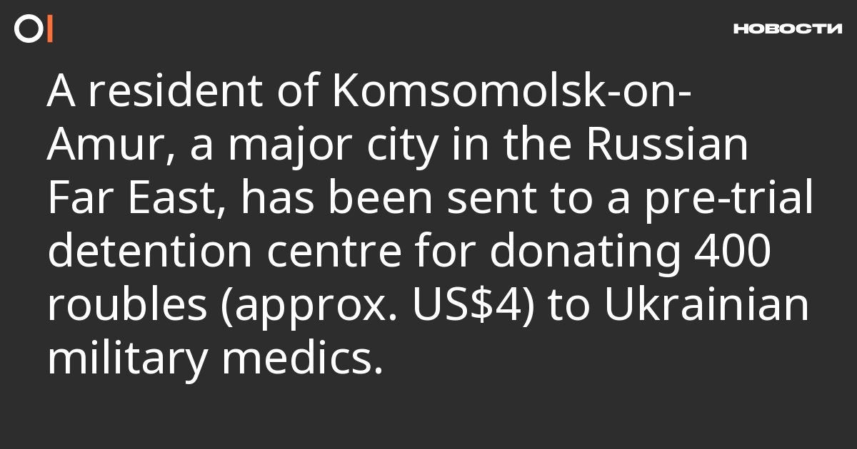 In Komsomolsk-on-Amur, a major city in the Russian Far East, a criminal case for high treason (Article 275 of the Russian Criminal Code) has been opened against Alexander Sarbaev, an employee of a trading company. He is accused of transferring 400 roubles (approx. US$4) to Ukrainian military medics in February 2022. Sarbaev wrote about this to Mediazona in a letter from the pre-trial detention centre (SIZO).