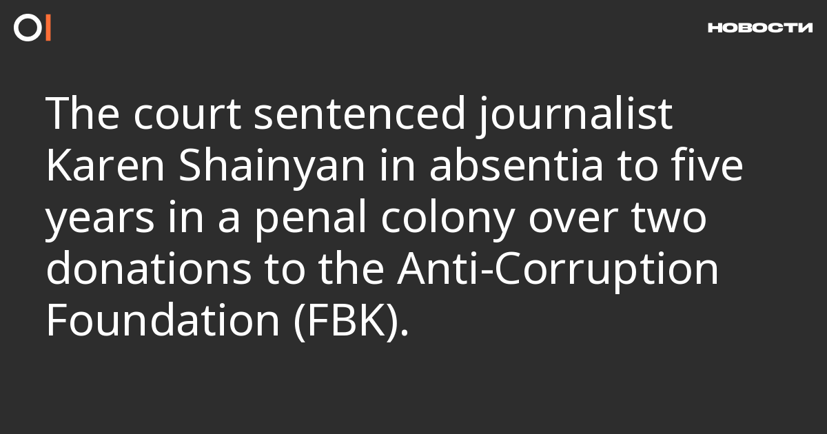 The Savyolovsky District Court in Moscow has sentenced journalist and LGBT activist Karen Shainyan in absentia to five years in a penal colony for financing the Anti-Corruption Foundation (FBK), which is designated as an “extremist organisation” in Russia (part 1, article 282.3 of the Criminal Code). This was reported by Mediazona.