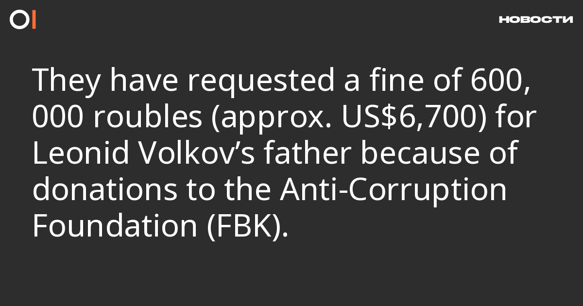 A mathematician and the father of politician Leonid Volkov, Mikhail Volkov, is facing a requested fine of 600,000 roubles (about US$6,600) in a case concerning the financing of the Anti-Corruption Foundation (FBK) (part 1 of Article 282.3 of the Russian Criminal Code), reports Mediazona.