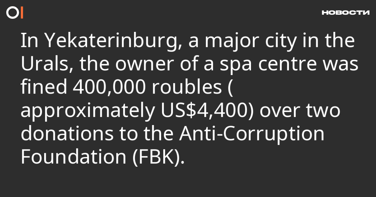 In Yekaterinburg, a major city in the Urals, a court fined the owner of a SPA centre 400,000 rubles (approximately US$4,370) on charges of financing extremist activity (part 1 of article 282.3 of the Criminal Code), reports Mediazona.