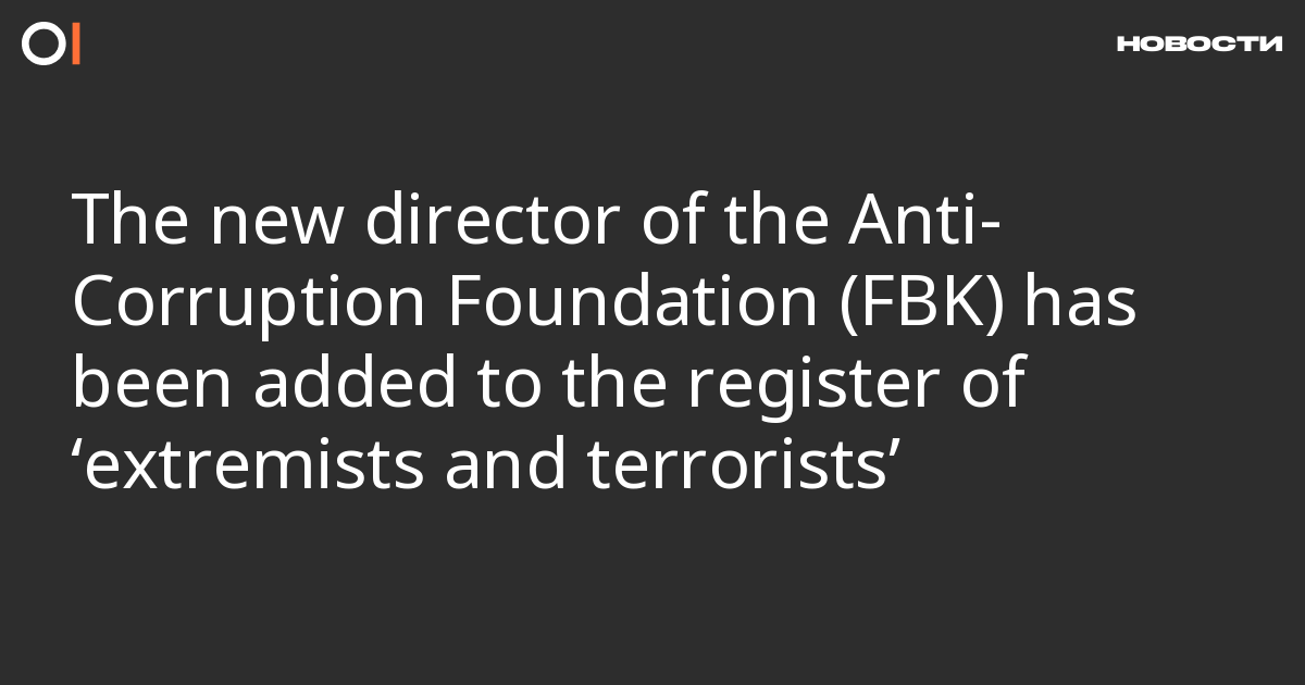 The new director of the Anti-Corruption Foundation (FBK) has been added to the register of ‘extremists and terrorists’