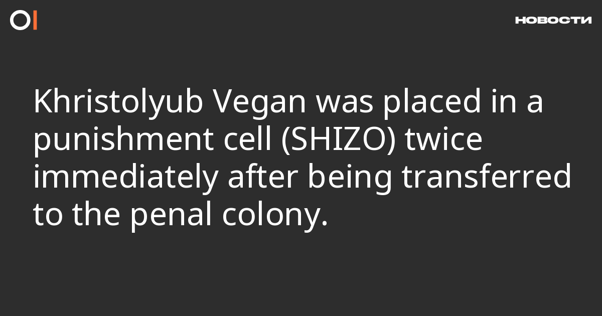 “As soon as I arrived, they immediately gave me 5 days in the punishment cell. And just now—another 15 days. For absolutely nothing, just like that. I agreed to everything, didn’t object to anything. And yet they still gave me 5, and starting today—another 15 days in total solitary. All allegedly because at some moment I didn’t stand up straight enough,” Vegan said.