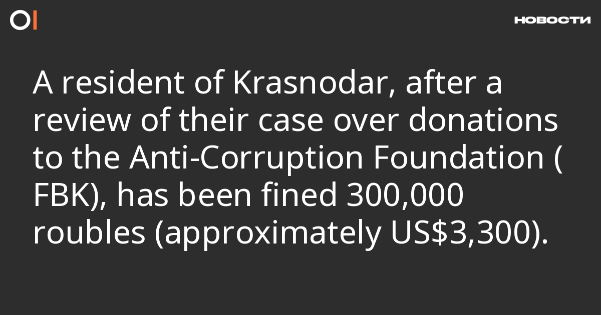 The prosecution against the Krasnodar resident was initiated over seven donations to FBK of 150 roubles each (a total of 1,050 roubles).
