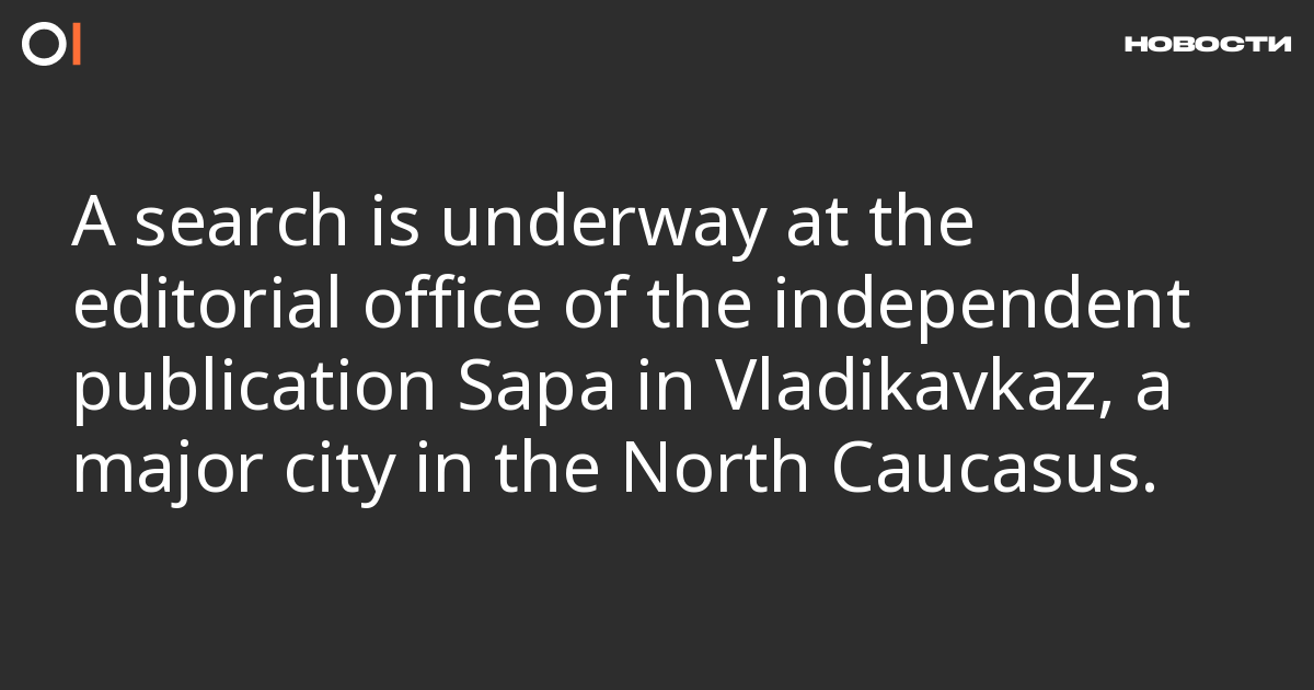 A search is underway at the editorial office of the independent publication Sapa in Vladikavkaz, a major city in the North Caucasus. This was reported by the publication itself.