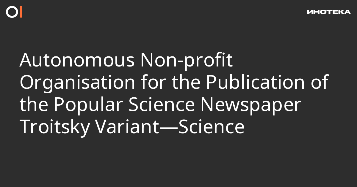 Autonomous Non-profit Organisation for the Publication of the Popular Science Newspaper Troitsky Variant—Science