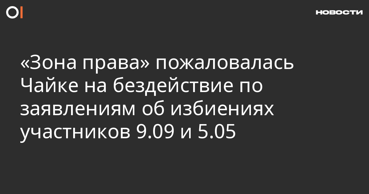 Правозащитная организация «Зона права» пожаловалась генпрокурору Юрию Чайке на бездействие следователей, принимавших заявления об избиении участников акции 5 мая «Он нам не царь» и 9 сентября против повышения пенсионного возраста. Об этом пишет «Медиазона» со ссылкой на организацию.
