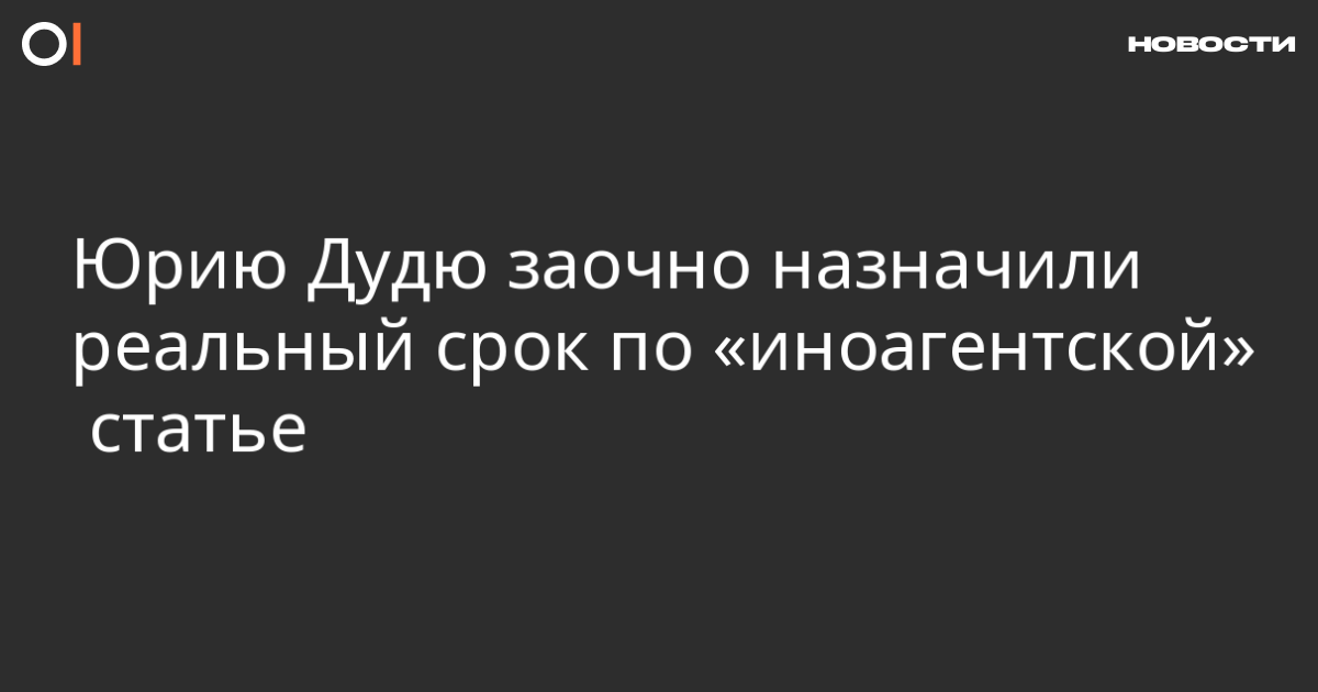 Журналиста Юрия Дудя приговорили к году и 10 месяцам общего режима заочно по статье об уклонении от исполнения обязанностей «иноагента» (ч. 2 ст. 330.1 УК). Об этом сообщает «Медиазона».