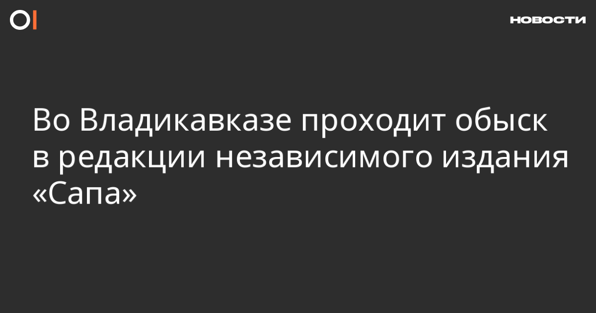 Во Владикавказе проходит обыск в редакции независимого издания «Сапа». Об этом сообщает само издание.