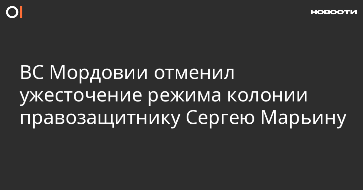 Верховный суд Мордовии отменил решении о переводе 70-летнего правозащитника Сергея Марьина из колонии-поселения в колонию общего режима. Об этом ОВД-Инфо сообщил его адвокат Андрей Курятников.